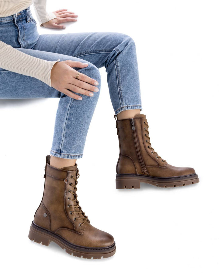 Anfibio donna Refresh in ecopelle taupe. Chiusura con allacciatura frontale e zip sul laterale interno. Calza facile posteriore e placchetta logo metallic. Fondo gomma con battistrada dentellato e tacco separato altezza 4 cm.