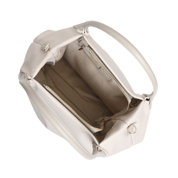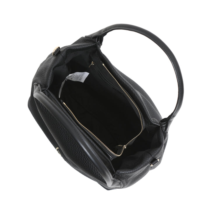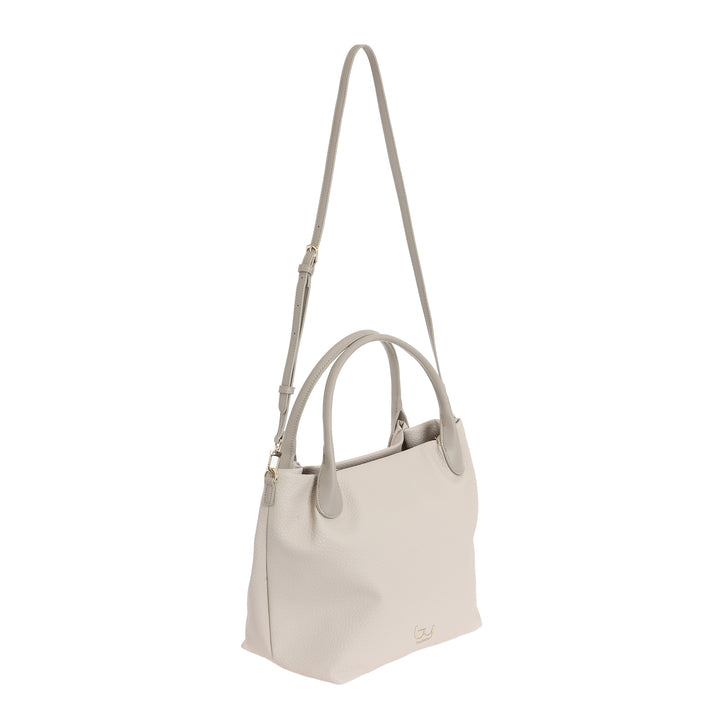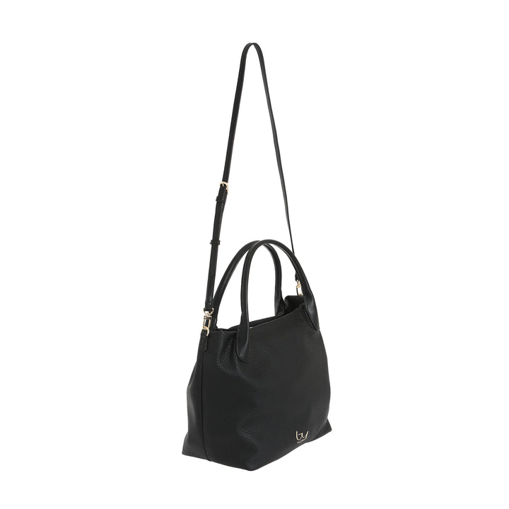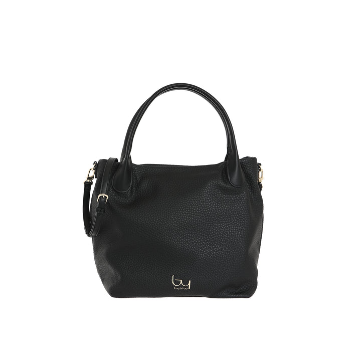 Borsa a mano da donna By Byblos in ecopelle effetto bottolato. Logo metallico frontale, chiusura scomparto principale con zip. Doppi manici rigidi e tracolla regolabile opzionale inclusa.