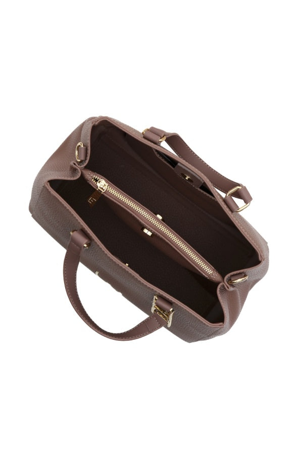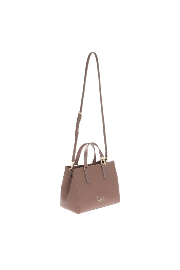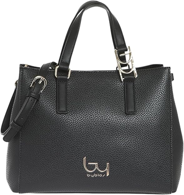 Borsa a mano da donna By Byblos in ecopelle con logo metallico frontale. Chiusura scomparto principale con zip, doppi manici fissi. Tracolla regolabile opzionale inclusa.