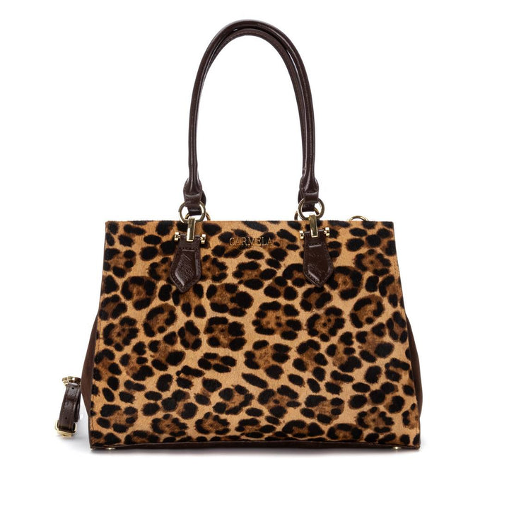 Borsa a mano da donna Carmela in pelle e cavallino animalier con chiusura a cerniera e tasche interne. Tracolla regolabile opzionale inclusa.