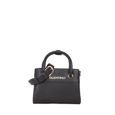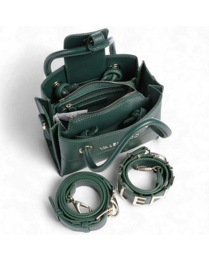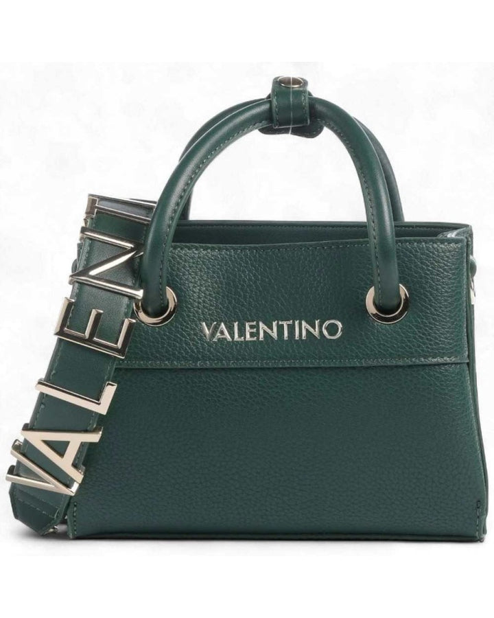 Borsa a mano da donna Valentino in ecopelle con logo frontale. Chiusura con cerniera e patta con clip magnetica. Doppi manici rigidi, scomparti multipli. Tracolla in tinta regolabile e removibile, intercambiabile con tracolla fissa con logo lettering metallico.