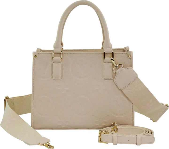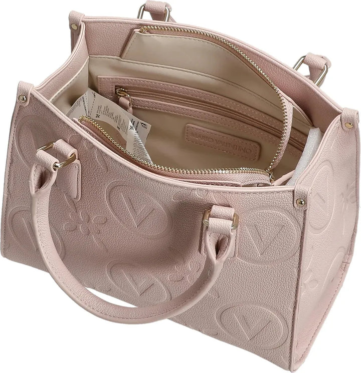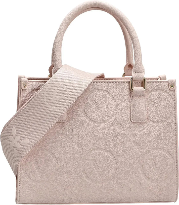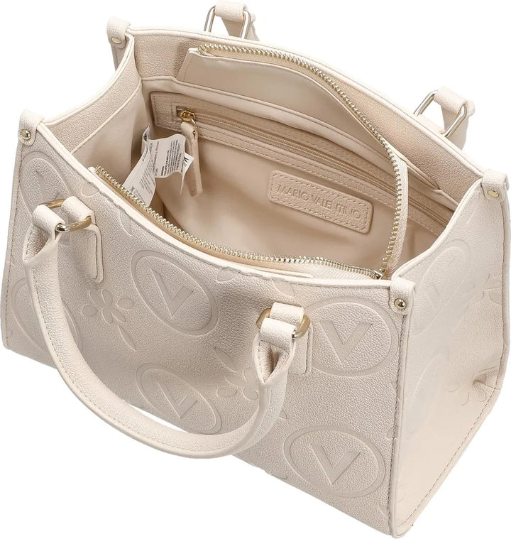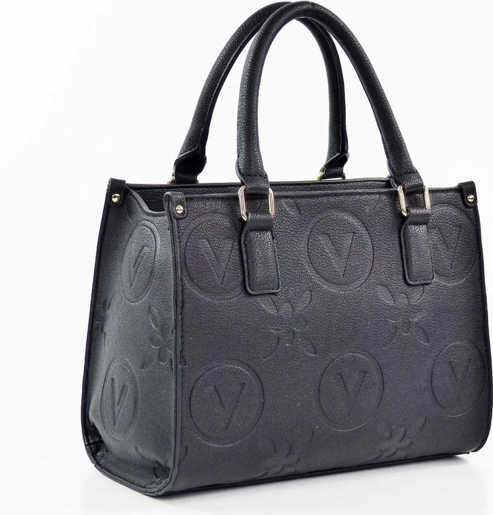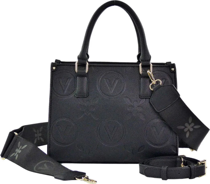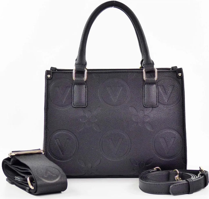 Borsa a mano da donna Valentino modello tote in ecopelle con stampa logo all-over. Chiusura scomparto principale con zip, doppio manico corto. Tracolla in tinta regolabile e removibile, intercambiabile con tracolla a nastro logata regolabile.
