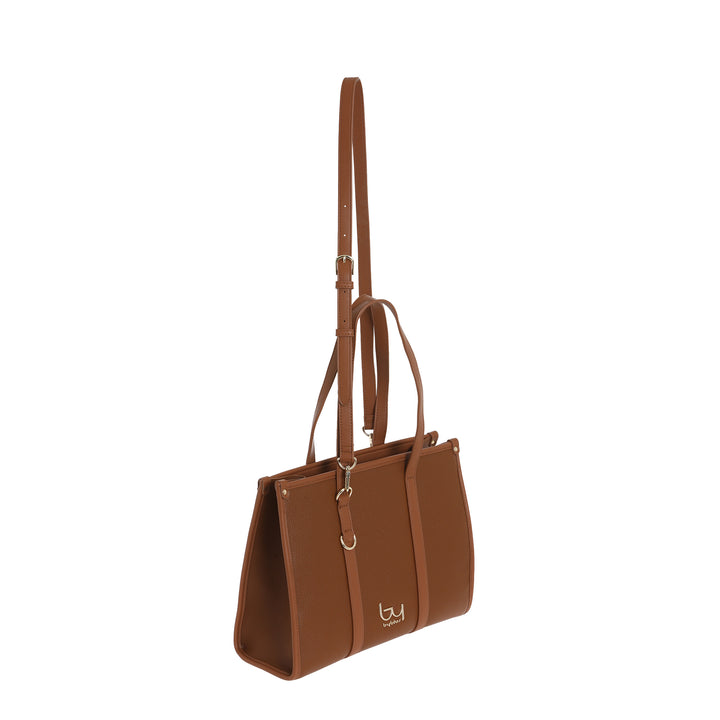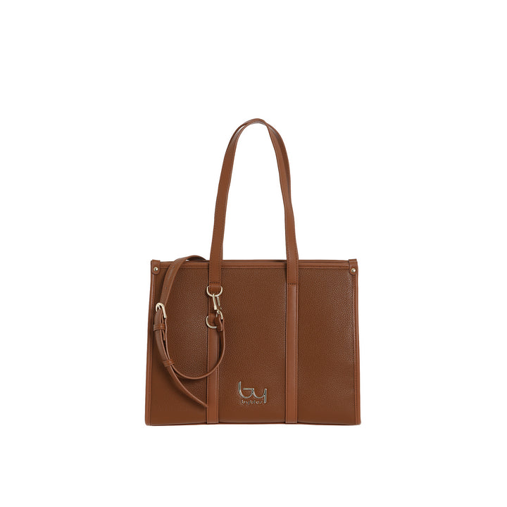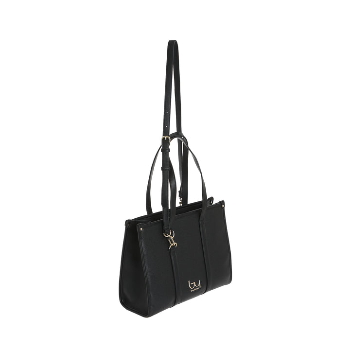 Borsa a spalla da donna By Byblos modello tote in ecopelle con logo metallico e chiusura con zip. Doppi manici e tracolla regolabile opzionale inclusa.