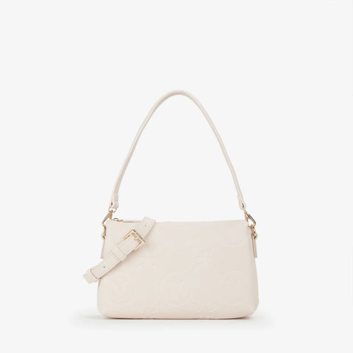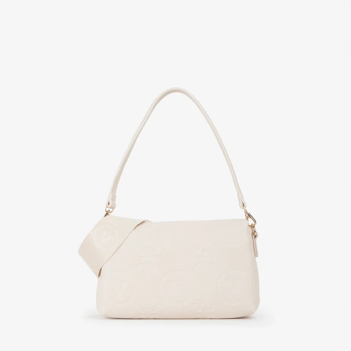 Borsa a spalla da donna Valentino in ecopelle con stampa logo all-over. Chiusura scomparto principale con zip, manico corto fisso. Tracolla in tinta regolabile e removibile, intercambiabile con tracolla a nastro logata regolabile.