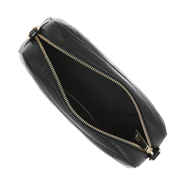Borsa a tracolla da donna By Byblos modello saponetta in ecopelle trapuntata effetto stropicciato. Logo metallico frontale, chiusura scomparto principale con zip. Tracolla regolabile inclusa.