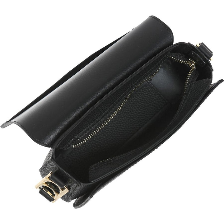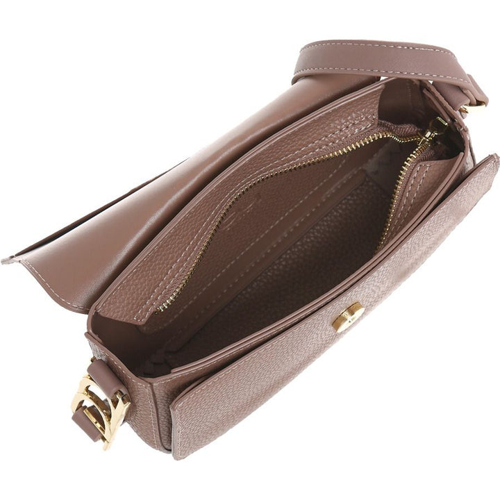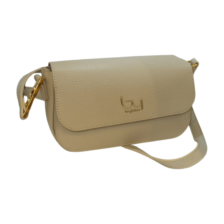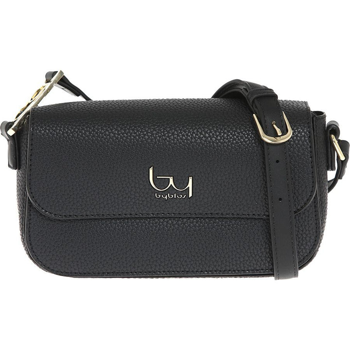 Borsa a tracolla da donna By Byblos in ecopelle con patta e logo metallico frontale. Chiusura scomparto principale con zip, tracolla regolabile fissa.