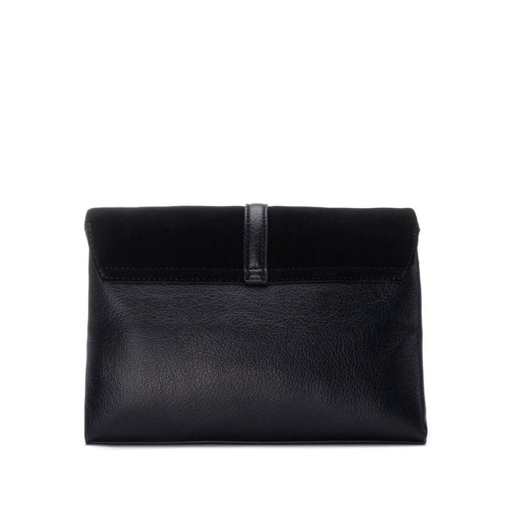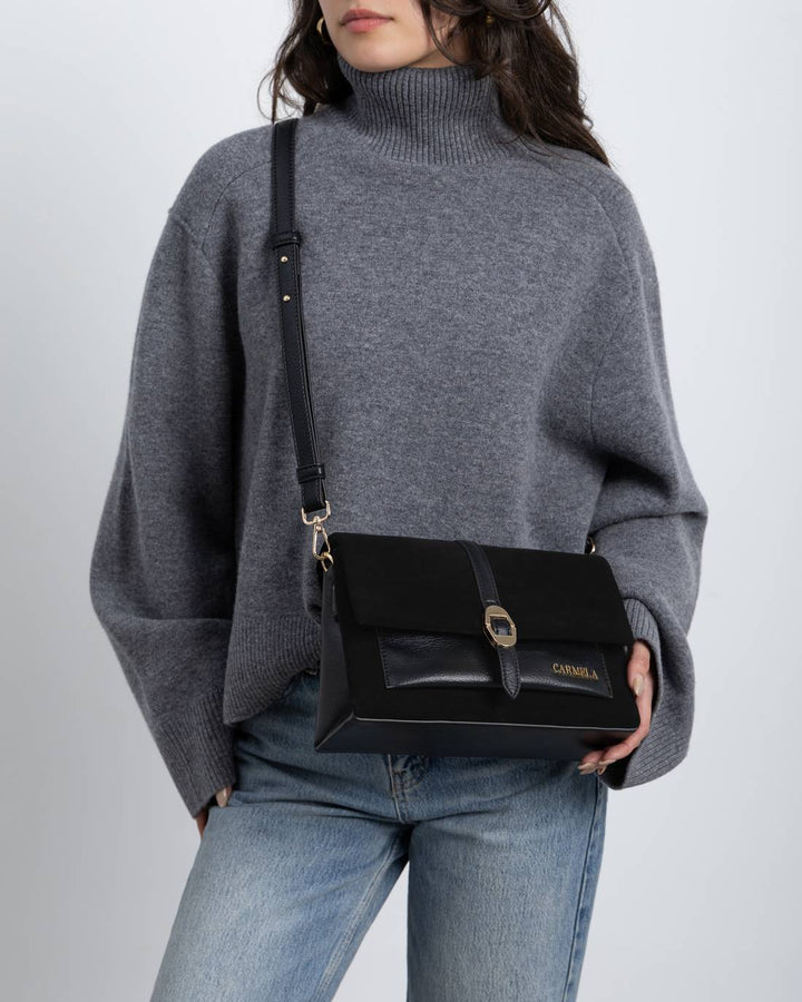 Borsa a tracolla da donna Carmela in pelle e camoscio con chiusura metallica e doppio scomparto. Tracolla regolabile.