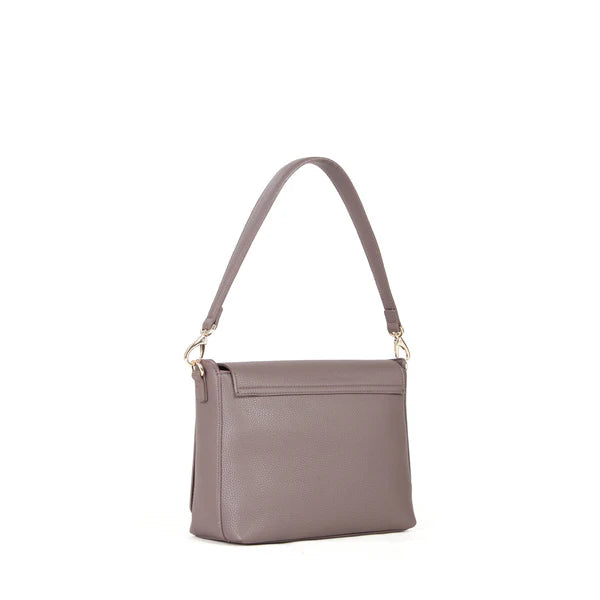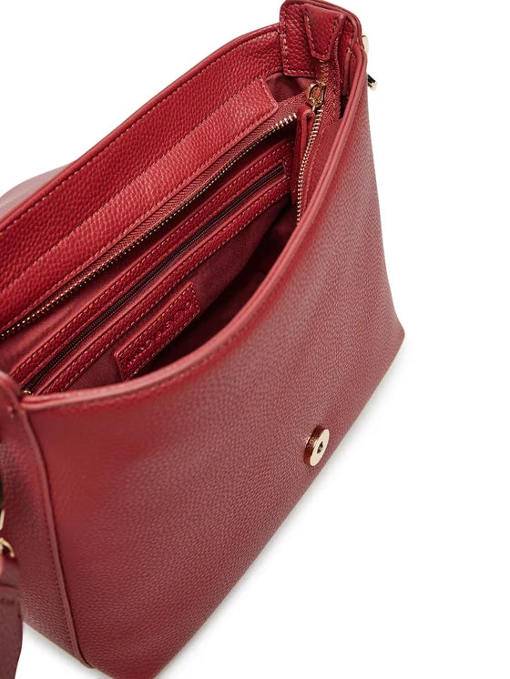 Borsa a tracolla da donna Valentino in ecopelle con patta con clip magnetica. Logo frontale, chiusura scomparto principale con cerniera. Manico corto removibile, incluse tracolla in tinta regolabile e removibile e tracolla a nastro logata.