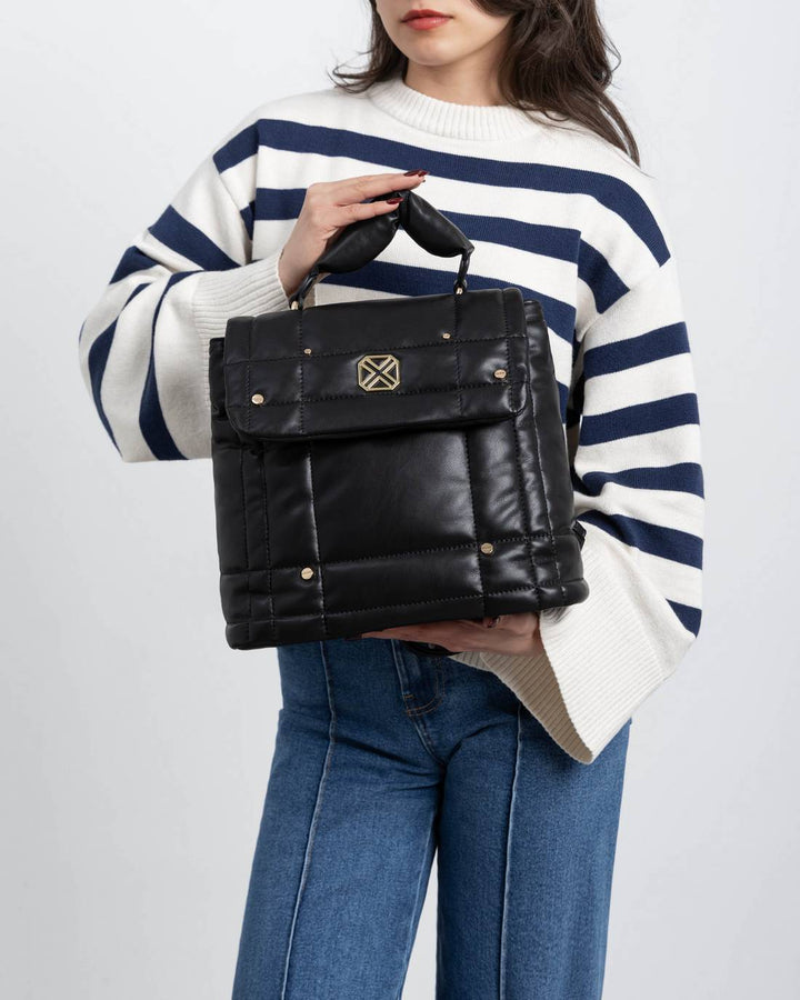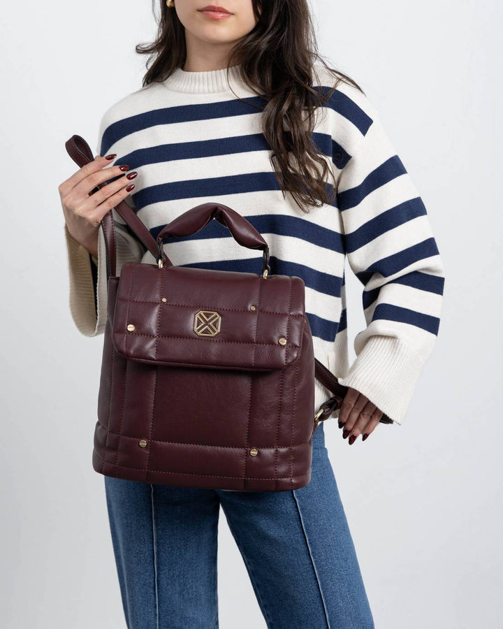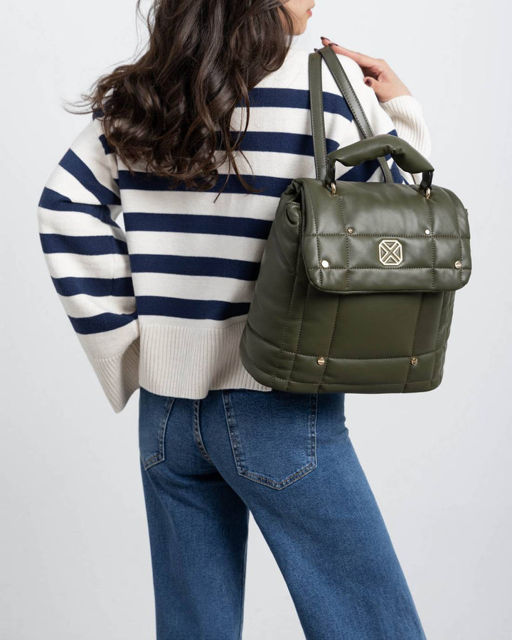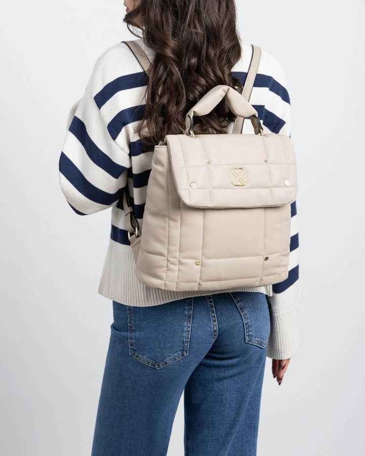 Zaino da donna Xti in ecopelle con design trapuntato. Patta con chiusura clip e zip per lo scomparto principale. Spallacci regolabili.