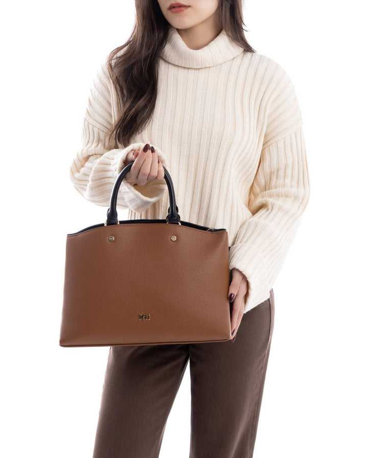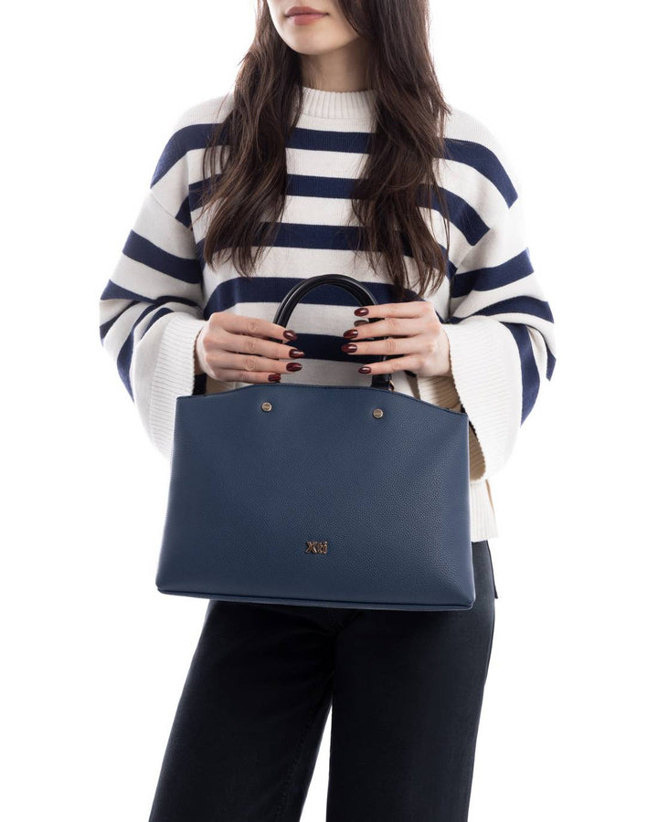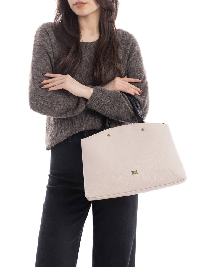Borsa a mano da donna Xti in ecopelle bottolata. Chiusura scomparto principale con zip e doppio manico corto. Tasca posteriore esterna con cerniera, tracolla regolabile inclusa.