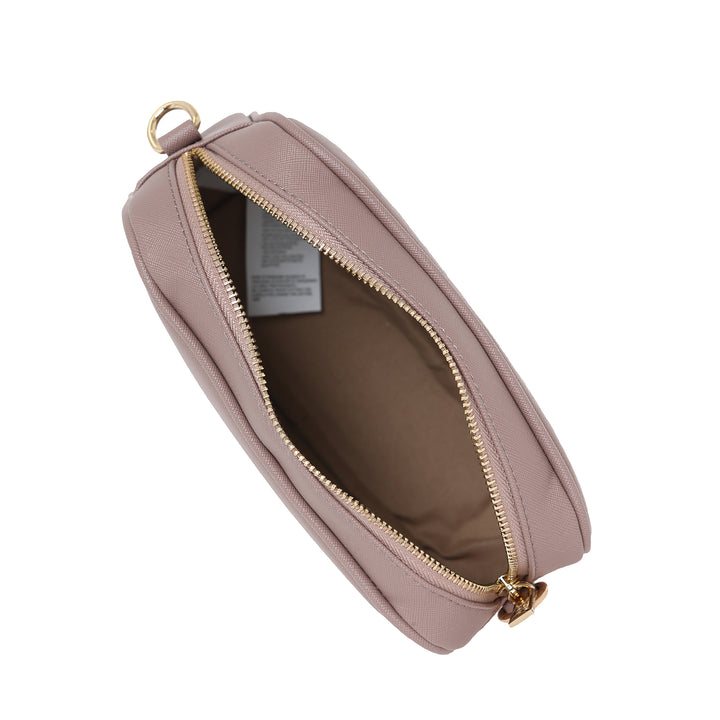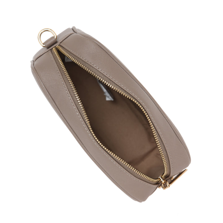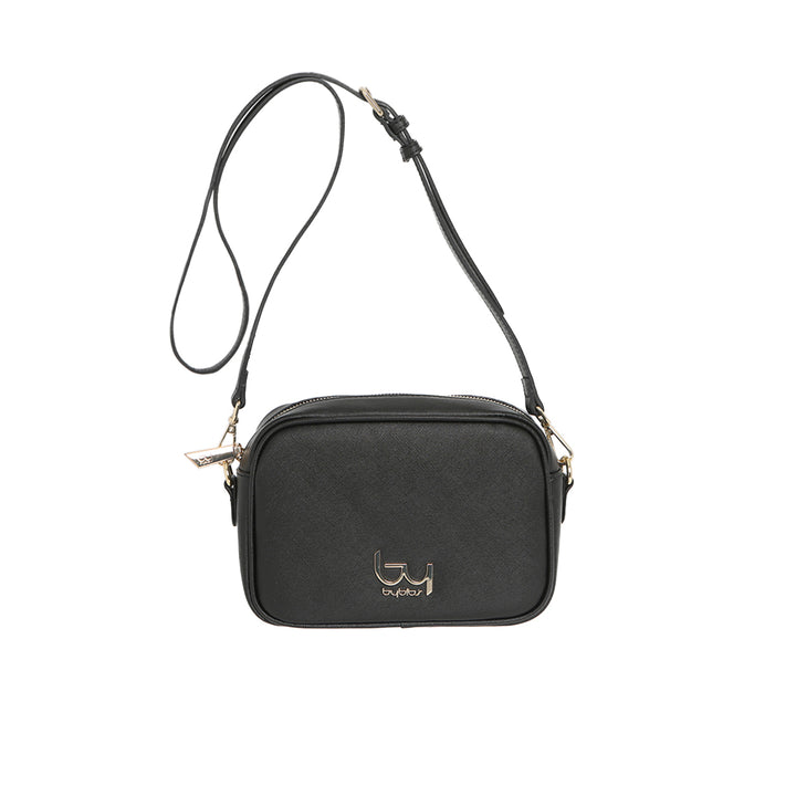 Borsa a tracolla da donna By Byblos modello saponetta in saffiano con logo metallico e chiusura con zip. Tracolla regolabile removibile.