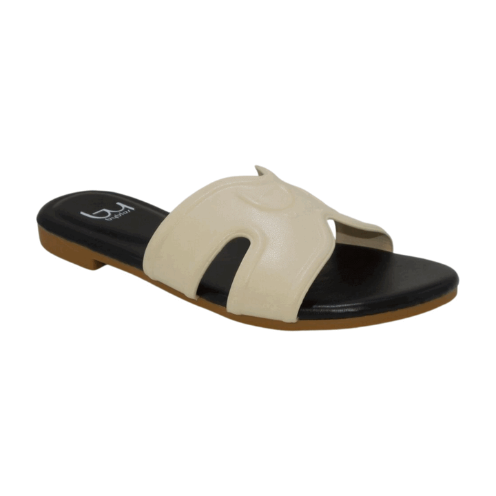 Ciabattina flat by Byblos in ecopelle con fascia gommata light grey con logo a rilievo e sottopiede a contrasto nero in memory foam. Fondo gomma con tacco a blocchetto altezza 2 cm.