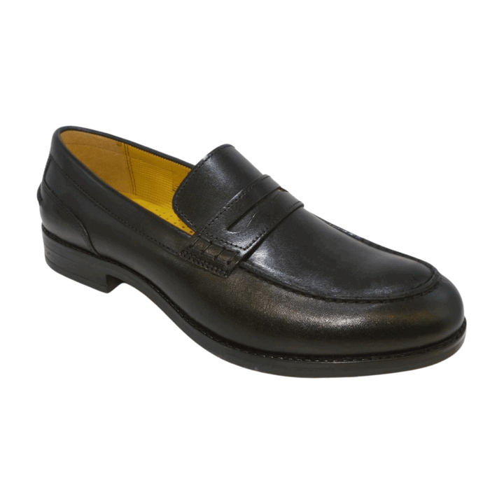 Mocassino uomo Valleverde in pelle nero liscio. Tomaia interna e plantare in pelle comfort foam. Fondo gomma con tacco separato altezza 3 cm.