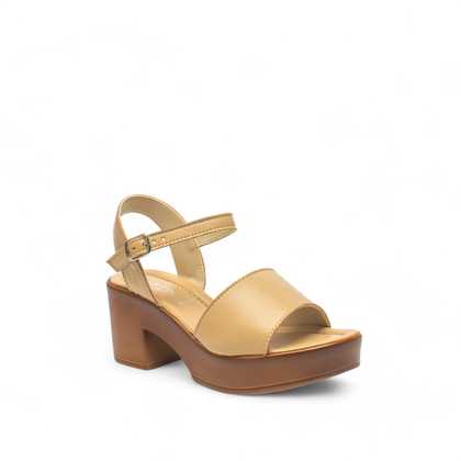 Sandalo Cinzia Soft in pelle beige a una fascia. Chiusura cinturino regolabile alla caviglia. Sottopiede in pelle in memory foam, altezza tacco 7 cm, altezza plateau 2.5 cm