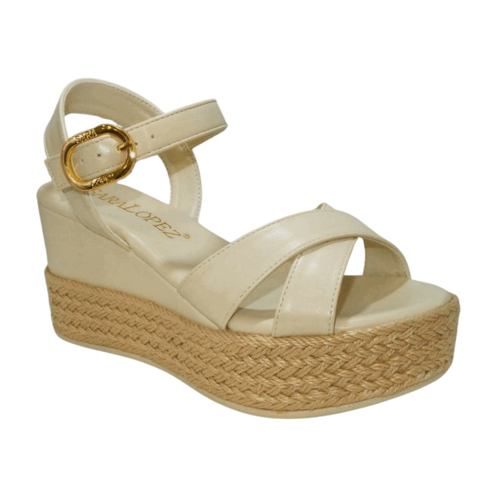 Sandalo zeppa donna sara lopez ecopelle crema off white sl51sa 309