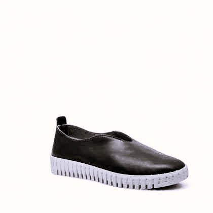 Slip-on donna Cinzia Soft in pelle liscia nera. Sottopiede in pelle morbido, fondo in gomma leggero super flessibile altezza 3 cm.