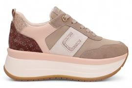 Sneakers donna 4US by Cesare Paciotti multicolor in camoscio e nylon con inserti glitter a contrasto. Chiusura con lacci piatti in cotone in tinta charms logo gioiello passalacci removibili. Linguetta logata e calza facile. Sottopiede morbido in pelle, fondo maxi platform in gomma altezza 6 cm.