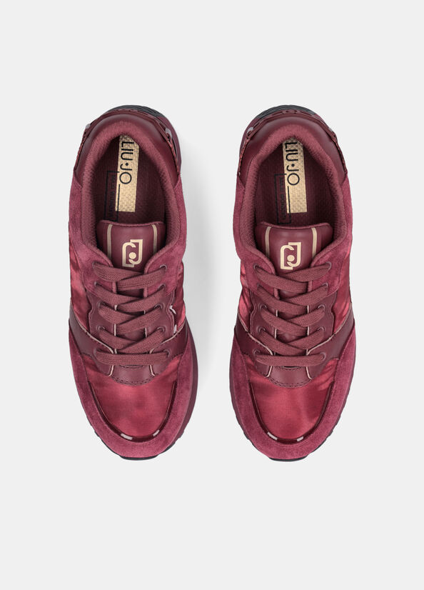 Sneakers donna Liu Jo in camoscio color lampone, con inserti in nylon e vernice in tinta. Morsetto in gomma con logo sul tallone, patch logo sulla linguetta. Chiusura con lacci piatti in cotone in tinta, sottopiede estraibile in comfort foam. Suola platform con design multistrato logato. Fondo gomma altezza 4.5 cm, con battistrada dentellato.
