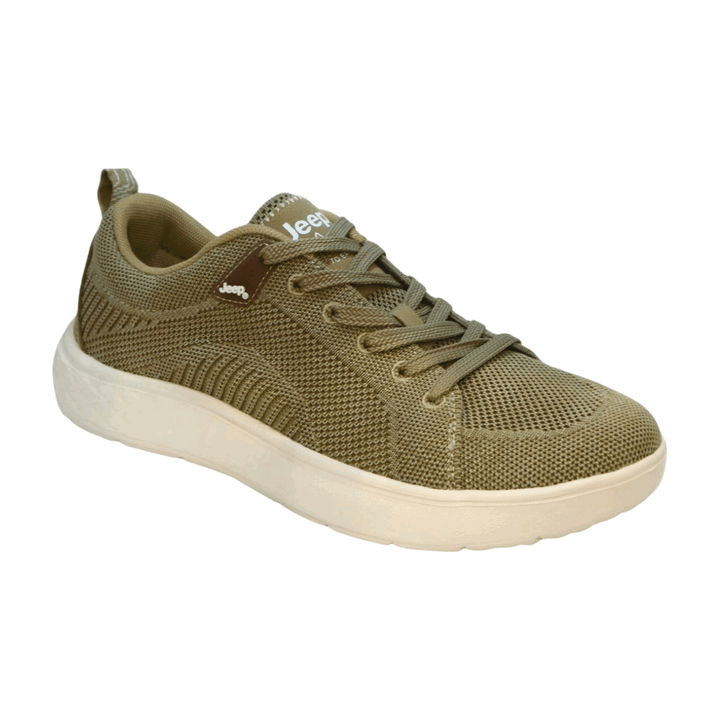Sneakers uomo Jeep in tessuto beige con allacciatura frontale. Plantare removibile memory foam, calza facile posteriore. Fondo gomma flex ultra light altezza 3.5 cm