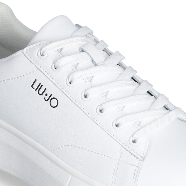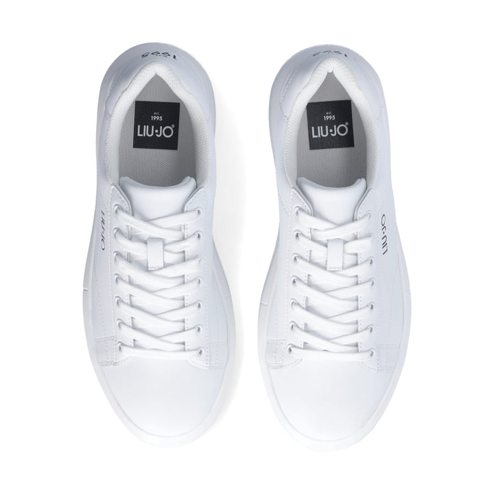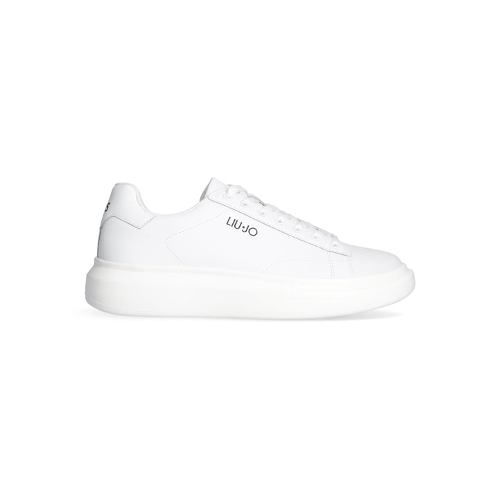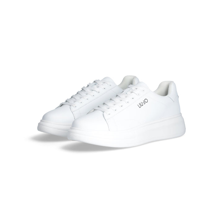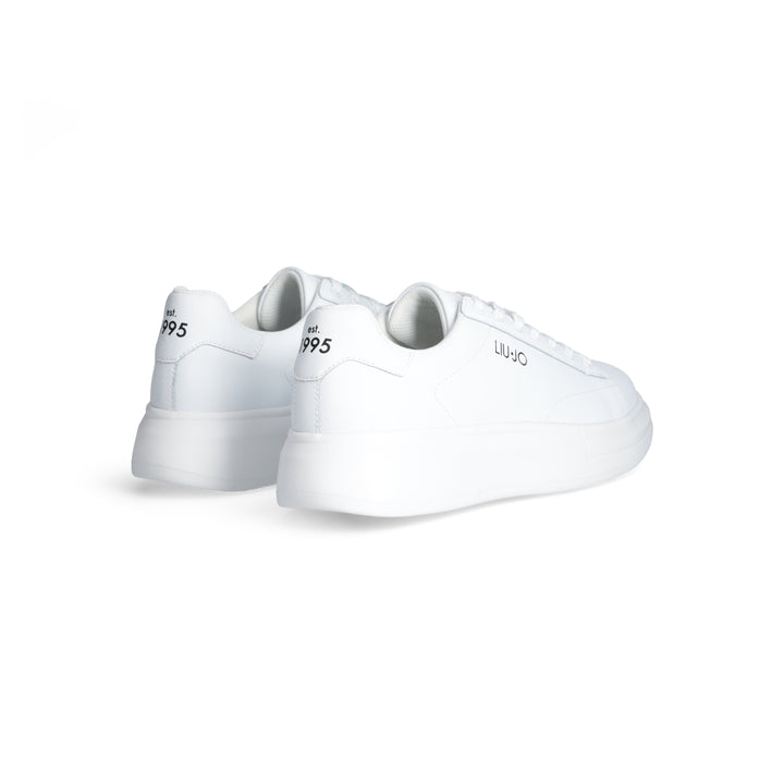 Sneakers uomo Liu Jo in pelle bianca con logo brand laterale. Chiusura con lacci piatti in cotone in tinta, stampa "est. 1995" sul dietro. Suola bold altezza 5.5 cm