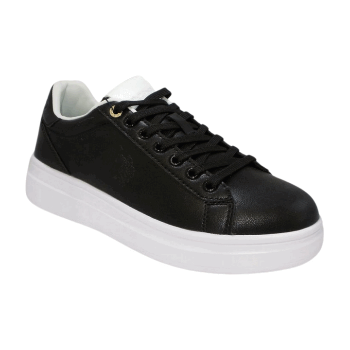 Sneakers uomo U.S. Polo Assn. in ecopelle total black con logo stampato sul laterale in tinta. Linguetta e talloniera logate, chiusura con lacci piatti in cotone in tinta. Fondo gomma bold altezza 4 cm.