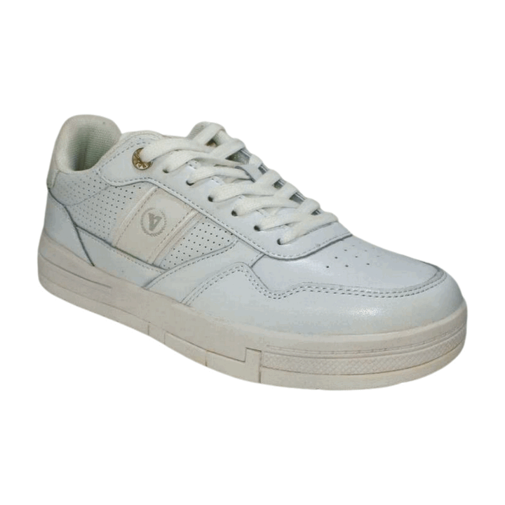 Sneakers uomo Valleverde in pelle total white con inserti laserati, tomaia interna in pelle e plantare removibile in memory foam. Linguetta e talloniera logate, chiusura con lacci piatti in cotone in tinta. Patch logo laterale, fondo gomma altezza 4 cm.
