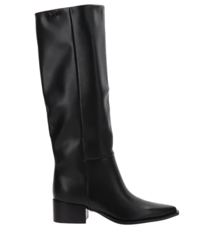 Stivale donna 4US by Cesare Paciotti in ecopelle total black con mini logo metallico. Da infilare a calza, con gambale morbido. Sottopiede morbido, tacco a blocchetto altezza 5 cm.