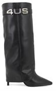 Stivale donna 4US by Cesare Paciotti in ecopelle total black con risvolto e fibbia con logo metallic. Da infilare a calza, con gambale morbido. Sottopiede morbido, tacco a stiletto altezza 10 cm.