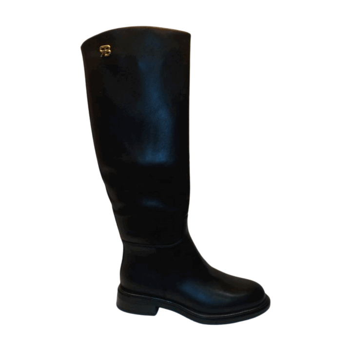 Stivale donna Renato Balestra al ginocchio in ecopelle nera con gambale liscio. Chiusura zip sul laterale interno e piccolo inserto elastico sul polpaccio. Plantare comfort foam, fondo in gomma antiscivolo con tacco separato altezza 3 cm.