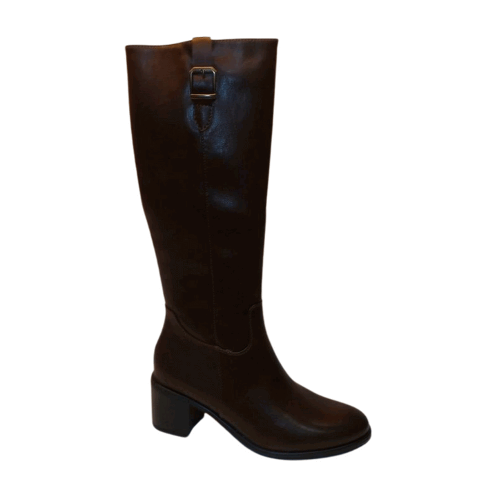 Stivale donna Renato Balestra in ecopelle marrone. Chiusura zip sul laterale interno fibbia metallica sul laterale esterno. Plantare comfort foam, fondo in gomma antiscivolo con tacco separato altezza 5.5 cm
