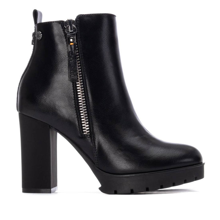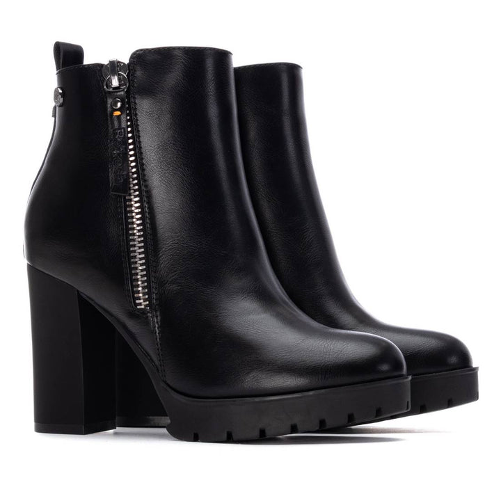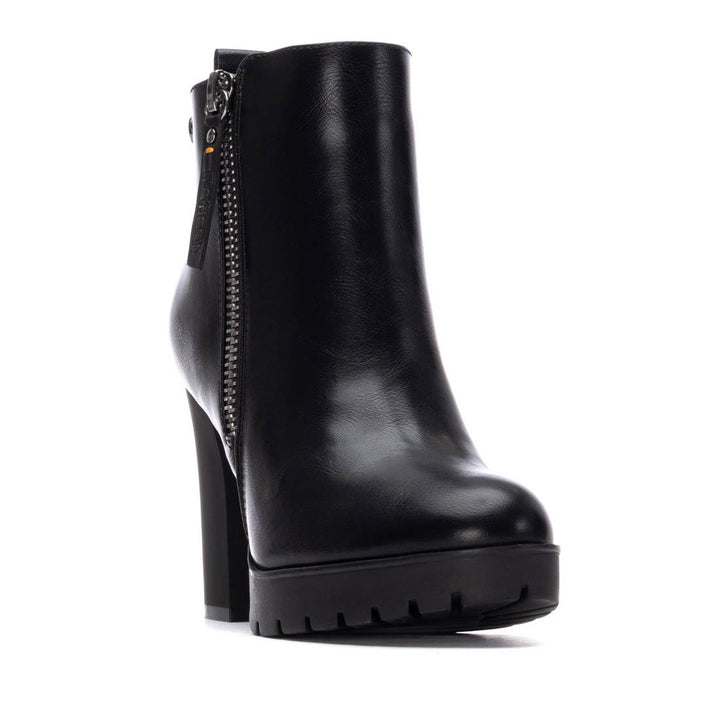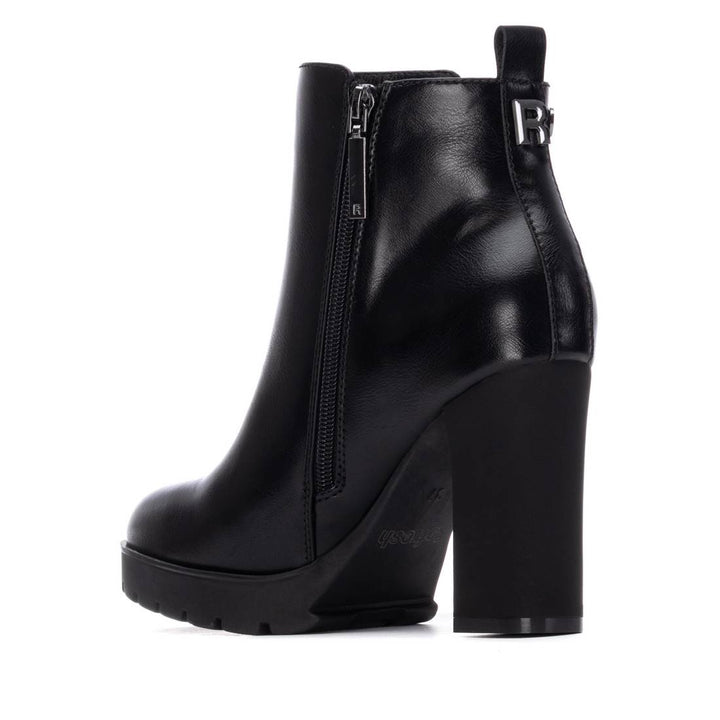 Tronchetto donna Refresh in ecopelle nero con inserto zip esteica sul laterale. Chiusura con zip sul laterale interno, sottopiede morbido comfort foam. Calza facile posteriore con logo metallic, fondo gomma con battistrada dentellato e tacco separato altezza 9.5 cm