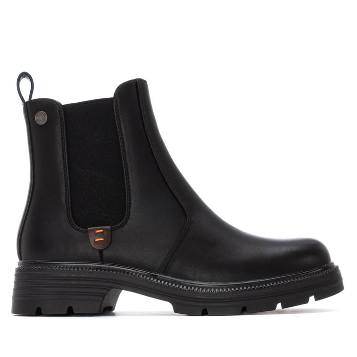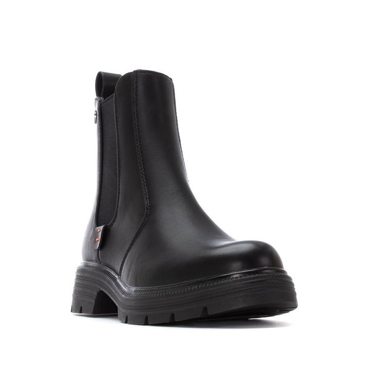 Tronchetto donna Refresh in ecopelle nero con inserto elastico laterale. Chiusura con zip sul laterale interno, sottopiede morbido comfort foam. Calza facile posteriore, fondo gomma striato con battistrada dentellato e tacco separato altezza 4 cm.