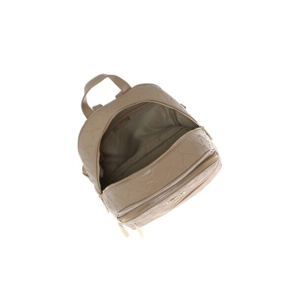 Zaino da donna By Byblos con logo in rilievo all-over e logo metallico. Chiusura scomparto principale con cerniera e doppio taschino anteriore esterno con zip. Spallacci regolabili
