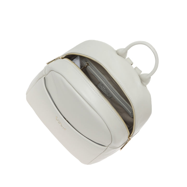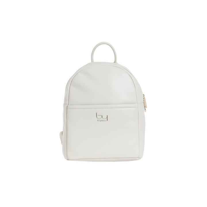 Zaino da donna By Byblos in ecopelle nappata con logo frontale metallico. Chiusura scomparto principale con cerniera e tasca anteriore esterna con clip. Spallacci regolabili
