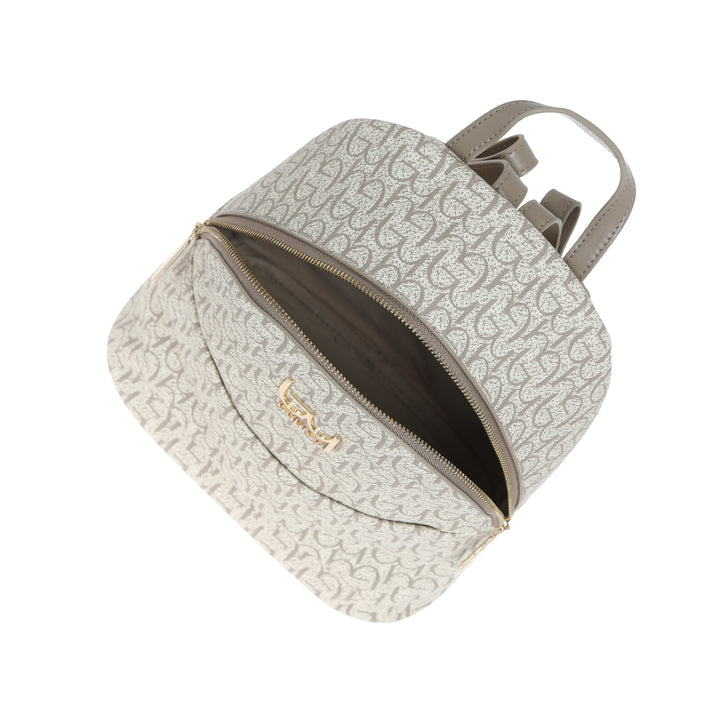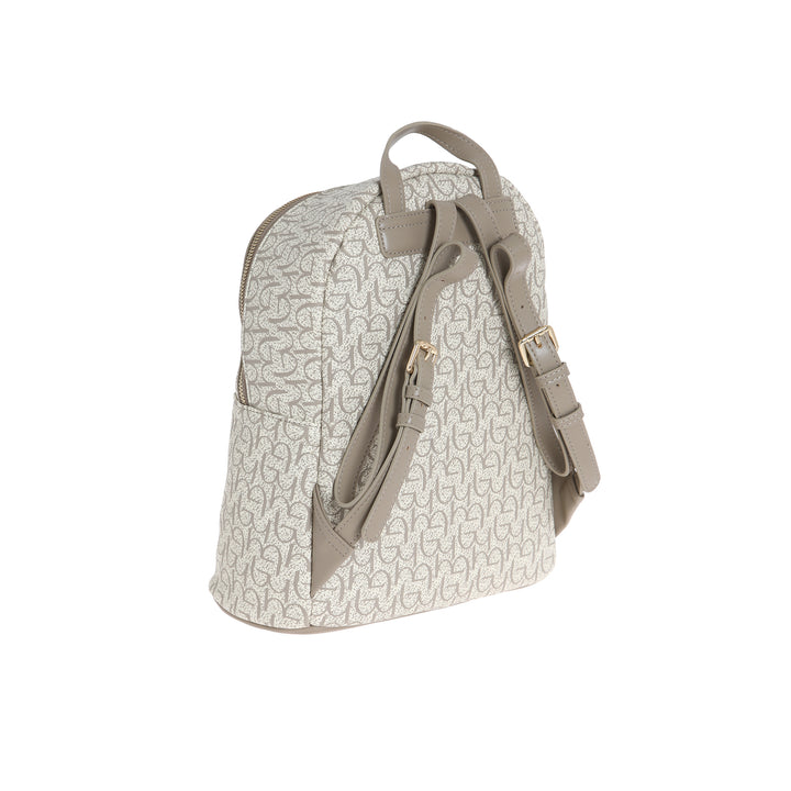 Zaino da donna By Byblos in ecopelle fantasia logo all-over e logo metallico. Chiusura scomparto principale con cerniera e tasca anteriore esterna. Spallacci regolabili.