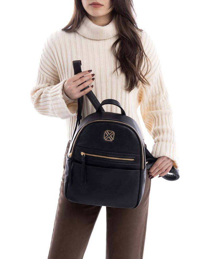 Zaino da donna Xti in ecopelle. Chiusura con zip per lo scomparto principale e tasca anteriore esterna con cerniera. Spallacci regolabili.