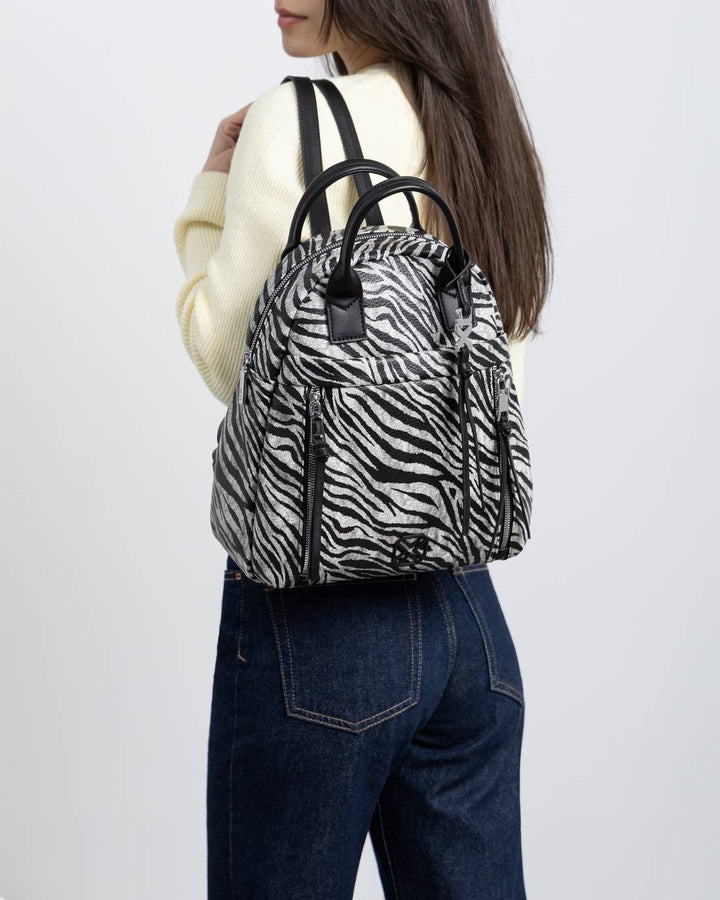 Zaino da donna Xti in ecopelle e stampa animalier. Chiusura scomparto principale con zip, spallacci regolabili.
