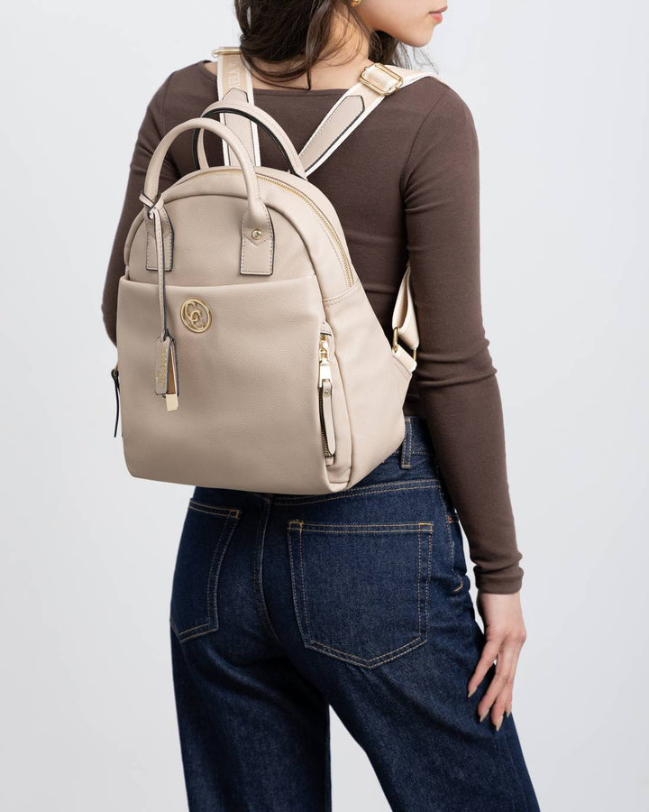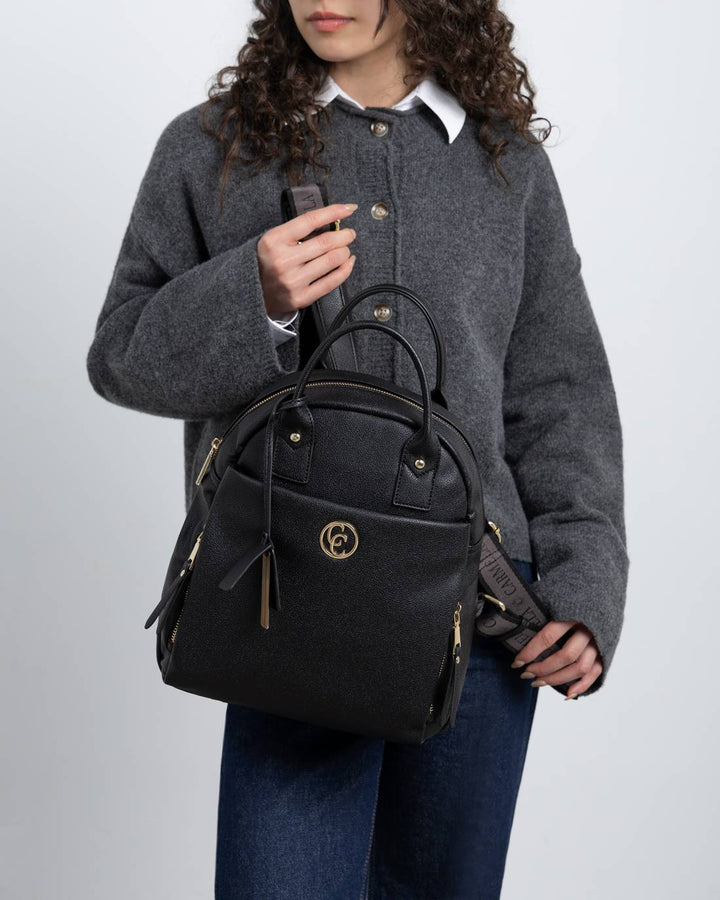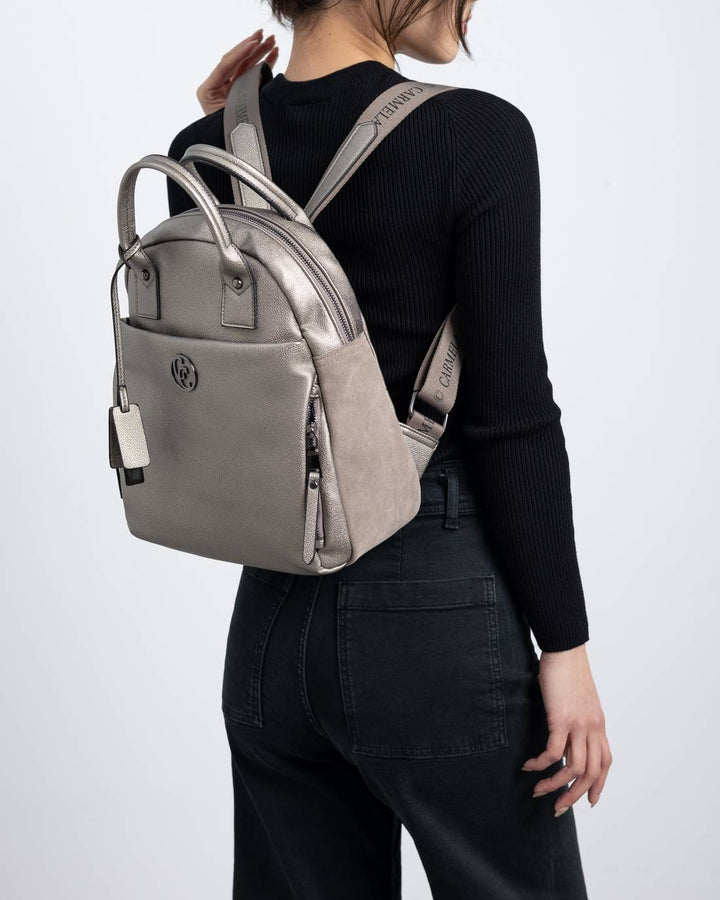 Zaino da donna Carmela in pelle, chiusura a cerniera e tasche esterne. Spallacci regolabili